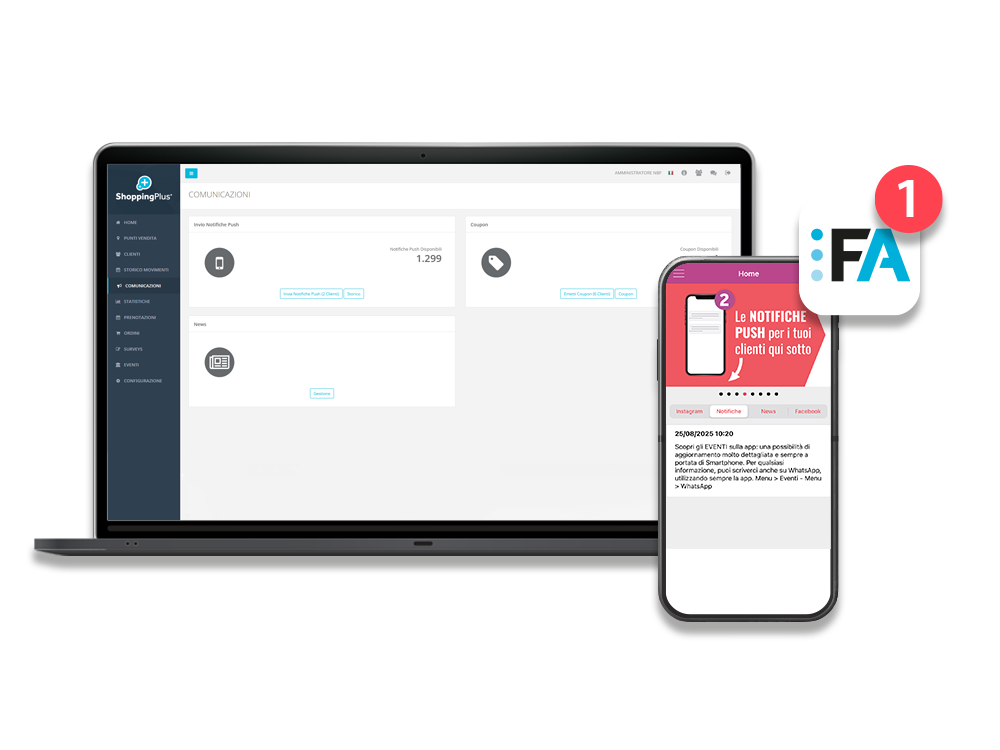 Il direct marketing è uno strumento molto potente, che permette di mantenere un legame costante con la clientela. Anche in termini di fidelizzazione, quindi, con il nostro sistema puoi incentivare i clienti a tornare, veicolando promozioni mirate, offerte dedicate e comunicazioni pertinenti.