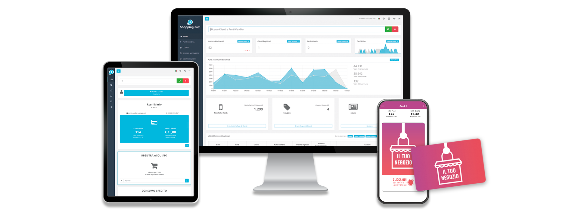 Costruisci una clientela fedele: Shopping Plus ti offre gli strumenti per creare un rapporto con i tuoi clienti, con focus specifico sulla loro FIDELIZZAZIONE, e far crescere il tuo business.